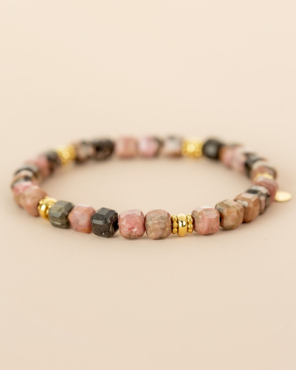 Bracelet rhodonite – perles carrées