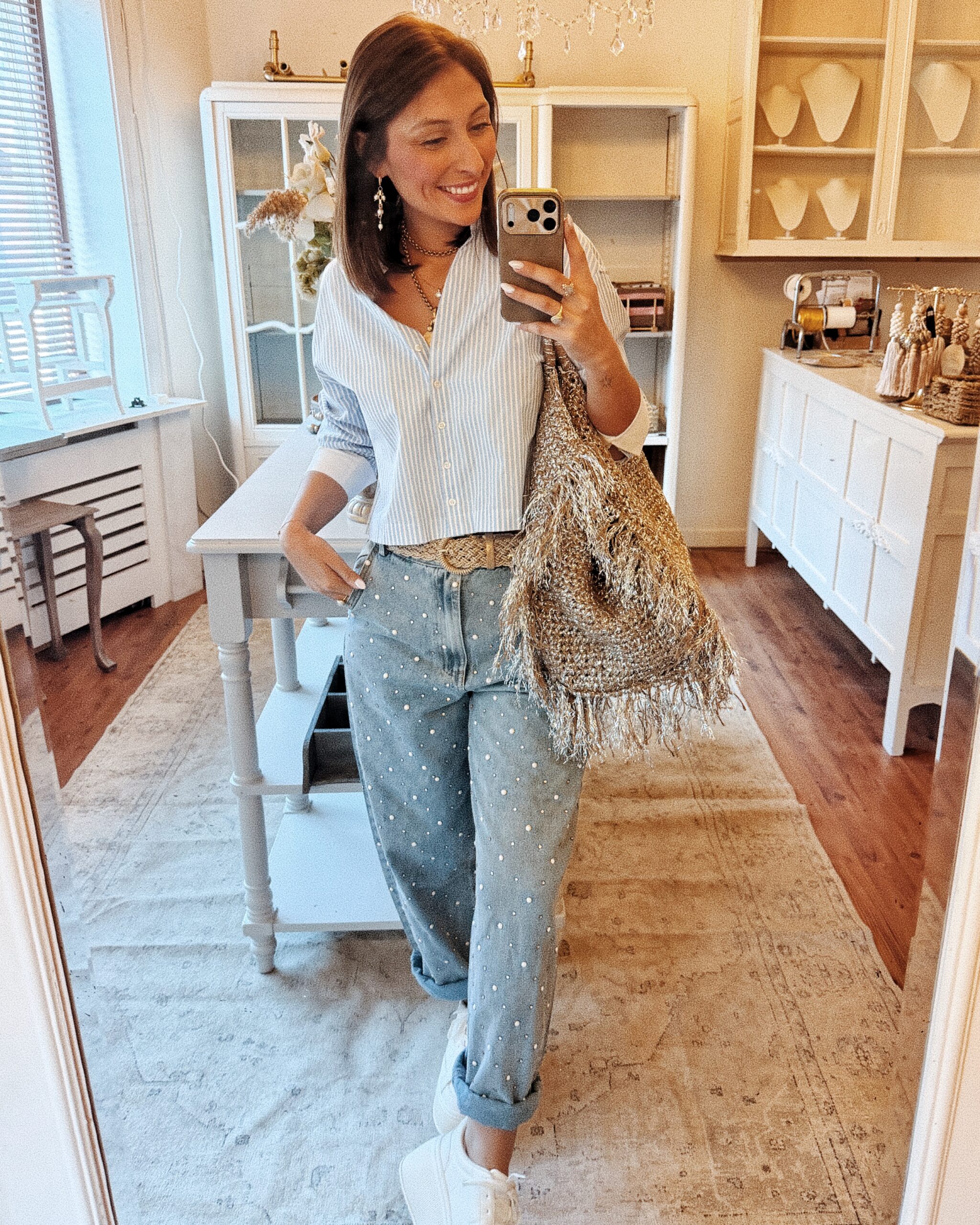 Avec ses détails délicats qui captent la lumière, ce jean devient une véritable pièce forte du dressing, parfaite pour sublimer une tenue simple et lui donner immédiatement du caractère. Un incontournable à adopter cette saison.