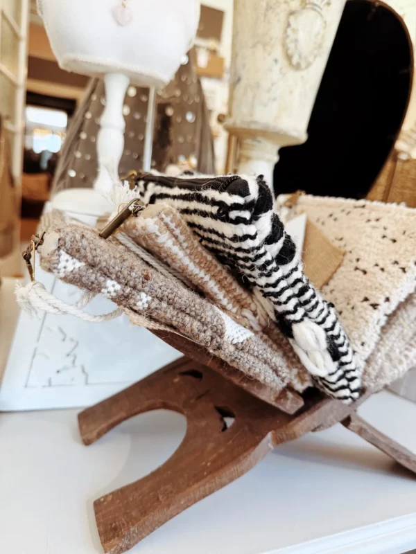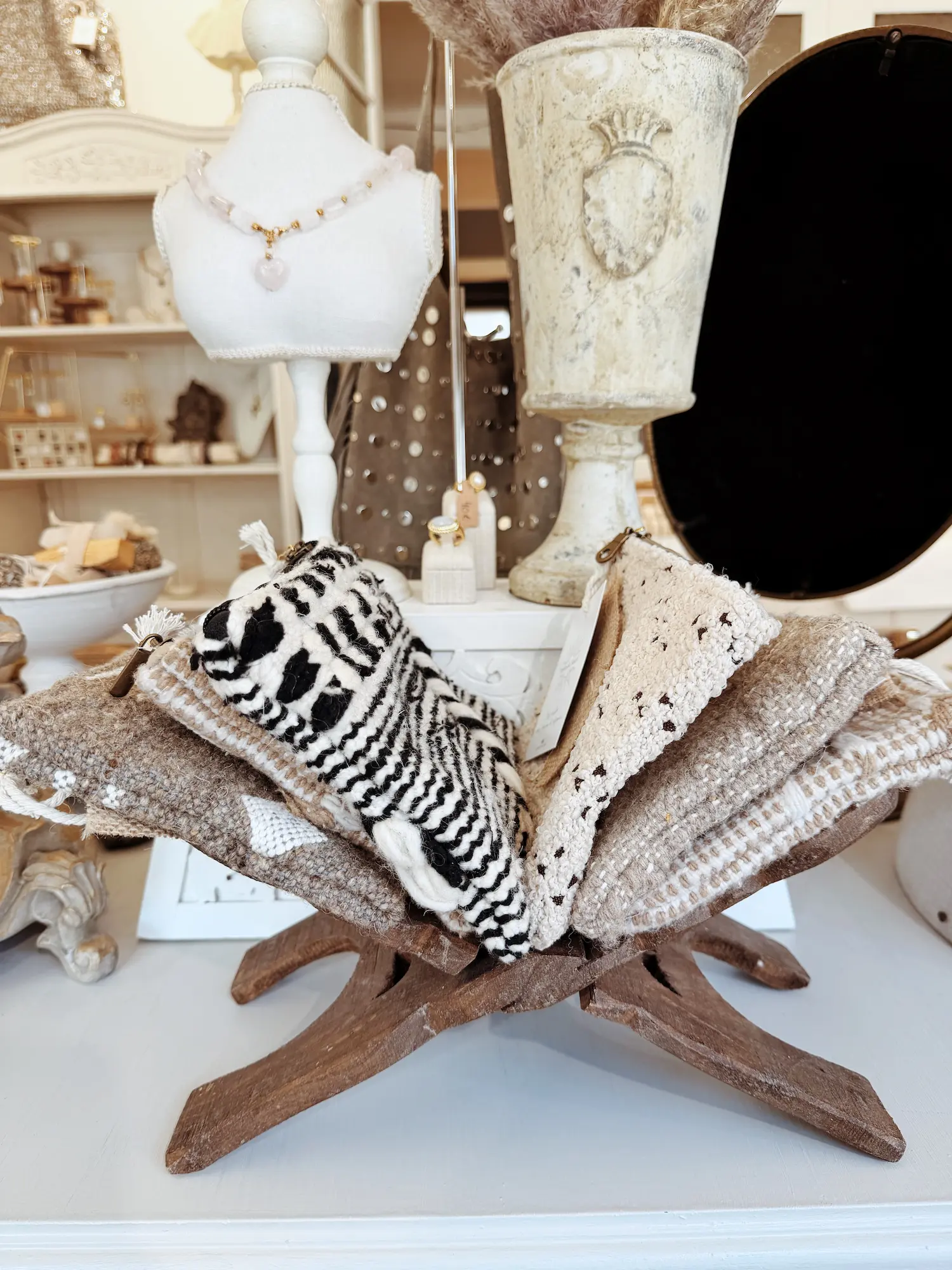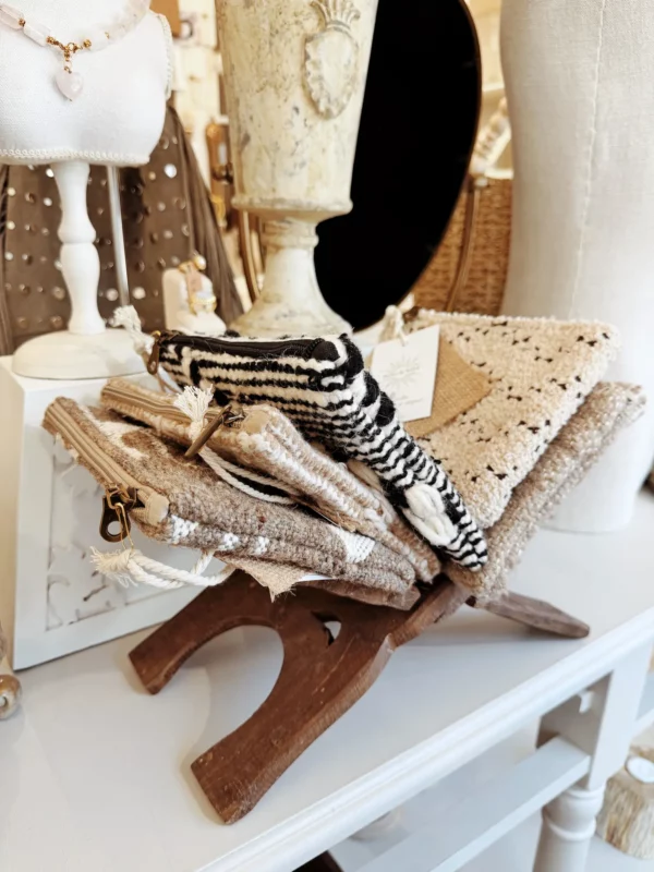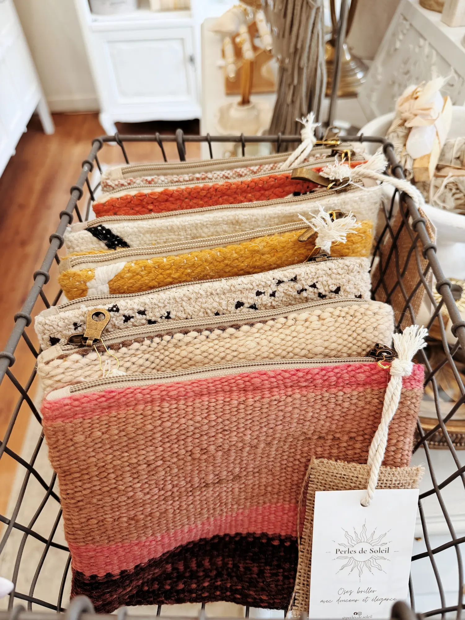 Ces magnifiques pochettes en laine sont confectionnées à la main à Marrakech par des femmes berbères, selon un savoir-faire artisanal authentique transmis de génération en génération. Douces, solides, uniques et pleines de charme, elles allient tradition, élégance et praticité.