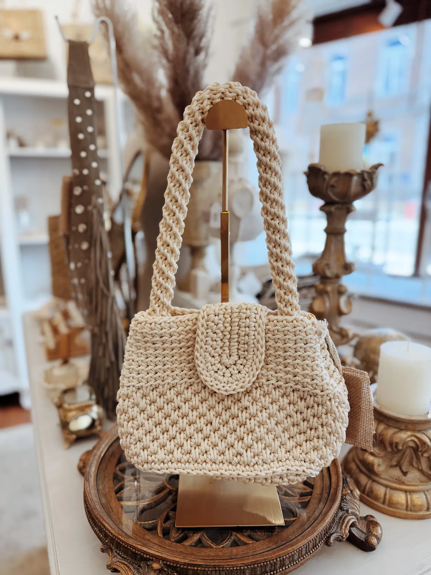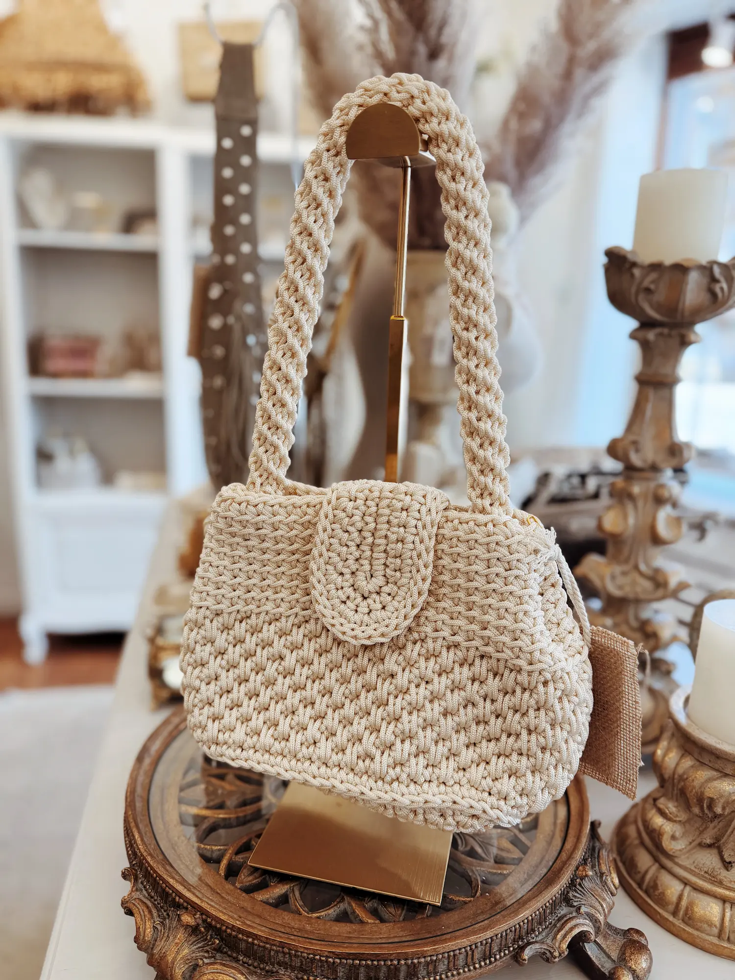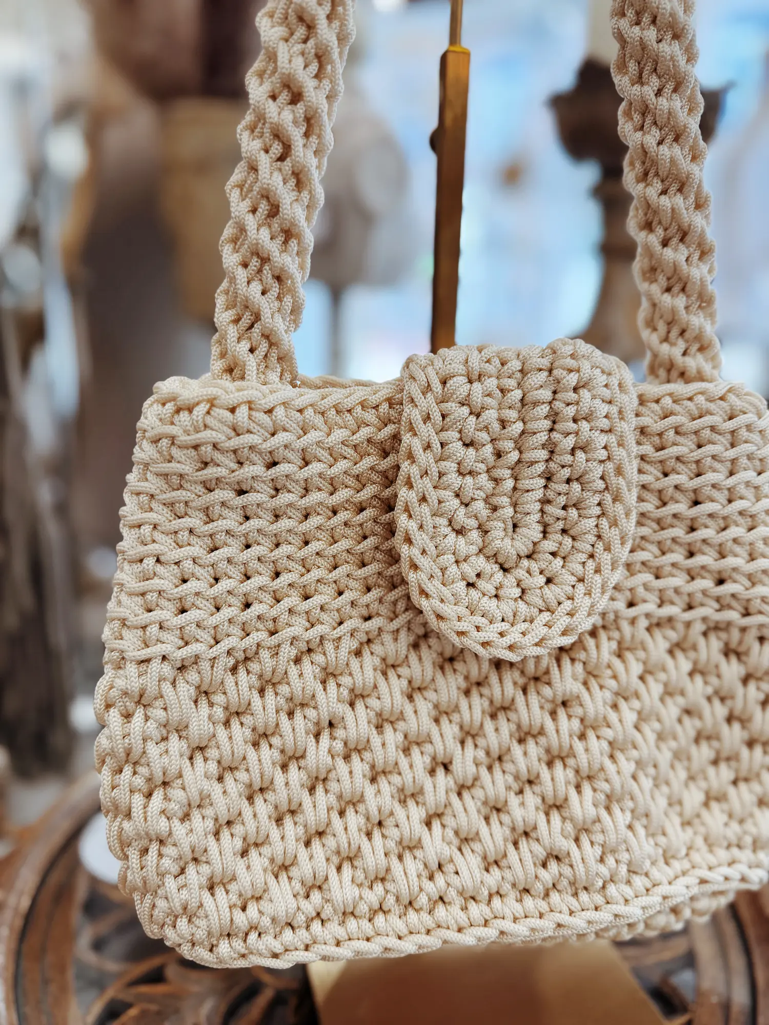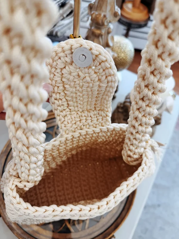 Ce joli petit sac entièrement crocheté séduit par son style délicat et artisanal. Son tressage fin lui donne une texture riche et élégante, idéale pour apporter une touche naturelle et raffinée à votre tenue.
